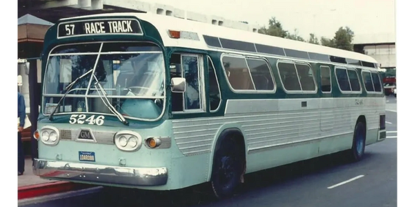 The 30 buses with automatic transmissions were assigned to the Disneyland service as well as the Pasadena and Santa Ana runs. GM did not offer this combination to any other operator for years, until 1971 when Gold Gate Transit gave them a big order and insisted on Wide body, double floor, forward-facing seats. This became an option available after 1971. Many operators ordered these modified New Looks, but only with one door (Check out bus #1346 and #8438).