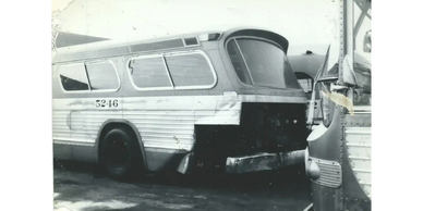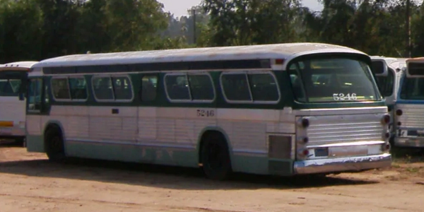 This bus was purchased from SCRTD Los Angeles. I purchased it in 1979. I have actually owned this one longer than SCRTD did. If I didn't have great friends at the SCRTD, this would have never happened. I was visiting South Park shops and noticed #5246 out of service because of a rear end collision. At the time I was buying ALL of SCRTD's scrap buses for just $50 each. They would strip them for parts, e.g. power plants, and I would get them for scrap. In this case I asked them to sell 35246 to me for $500, less the power plant.